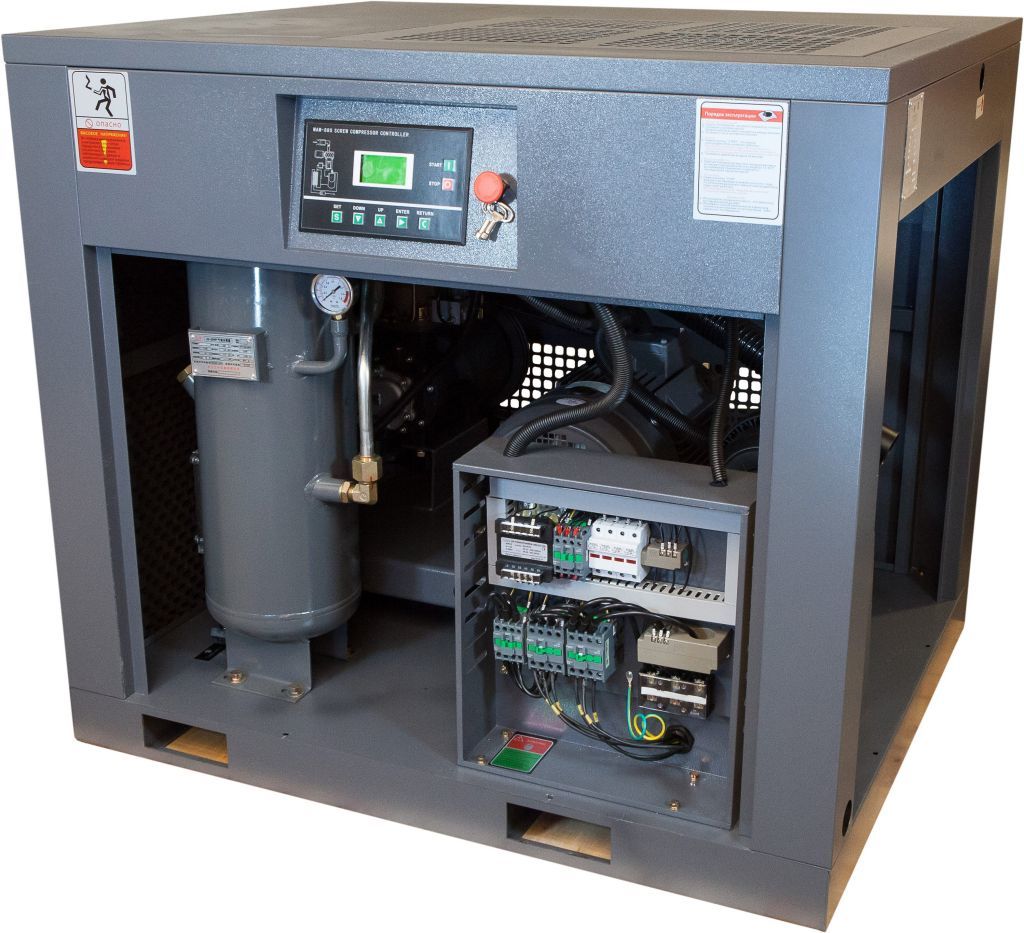 Компрессор оснащен современным электронным контроллером MAM-KY02S с удобным русифицированным интерфейсом и информативным LCD-дисплеем. Система управления обеспечивает полный контроль рабочих параметров, защиту от перегрузок, короткого замыкания и нестабильного напряжения.