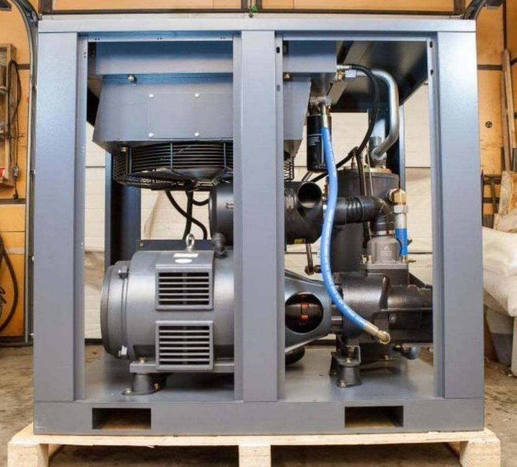 Компрессор оснащён мощным электродвигателем 22 кВт и современным винтовым блоком, обеспечивающим высокую производительность при давлении до 10 бар. Конструкция отличается прочным шумоизолированным корпусом, минимальной вибрацией и удобным доступом ко всем узлам для обслуживания.
