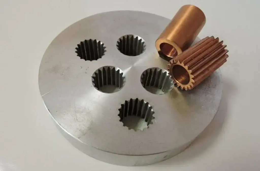Станок предназначен для изготовления штампов, пресс-форм, оснастки, шестерён, пазов, конусов, технологических элементов и других металлических деталей с 2D и 3D геометрией. Он уверенно работает с проводящими материалами любой твёрдости — от обычной и нержавеющей стали до титана, алюминия, графита и цветных металлов.