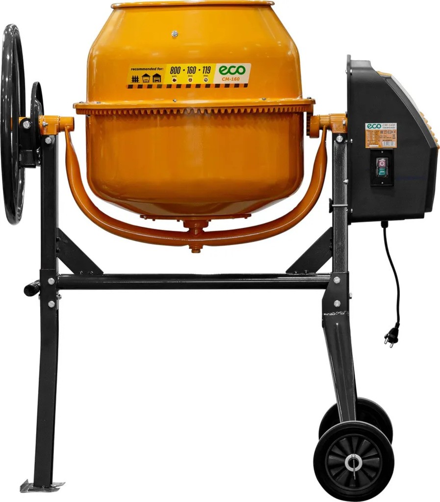 - Мощный электродвигатель: С мощностью 1000 Вт, бетоносмеситель обеспечивает эффективное и стабильное перемешивание, превращая загруженные компоненты в однородный бетонный раствор.